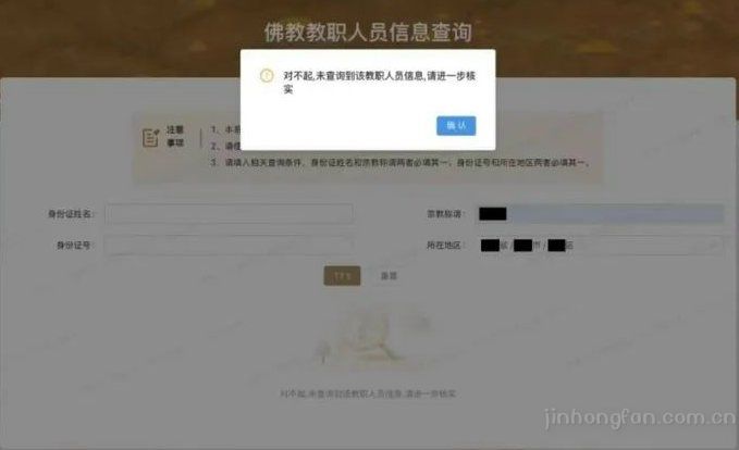 如果被查询人确为经依法认定备案的宗教教职人员,系统将显示该宗教教职人员相关信息。